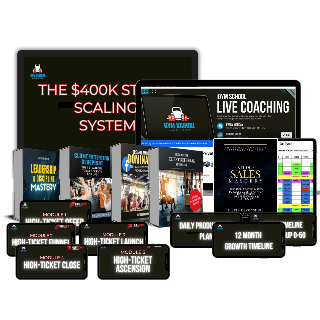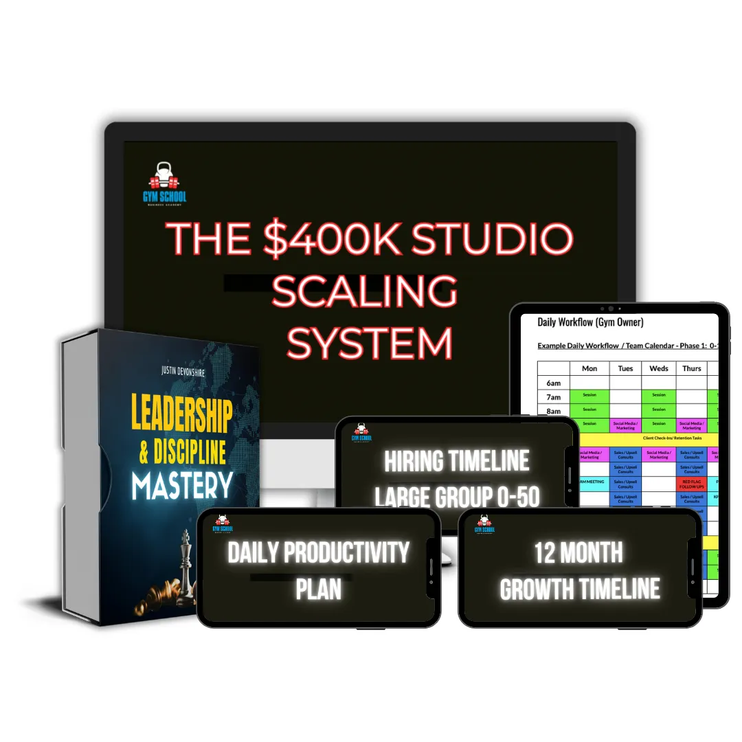 That's why I'm giving you access to my advanced $400K Studio Scaling System — the exact systems I used to grow my gym to over $400,000/year AND scale to 28 gyms to create a multi 7-figure fitness business - while stepping out of day-to-day operations.